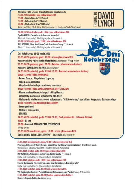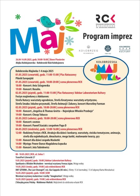 Maj to jedna z najpiękniejszych pór roku, a Kulturalny Maj'25 to również moc wrażeń i pozytywnych emocji, które upłyną pod znakiem dwóch kluczowych wydarzeń: Majówki zaplanowanej w dniach 1-4 maja oraz Dni Kołobrzegu zaplanowanych w dniach 23-25 maja.