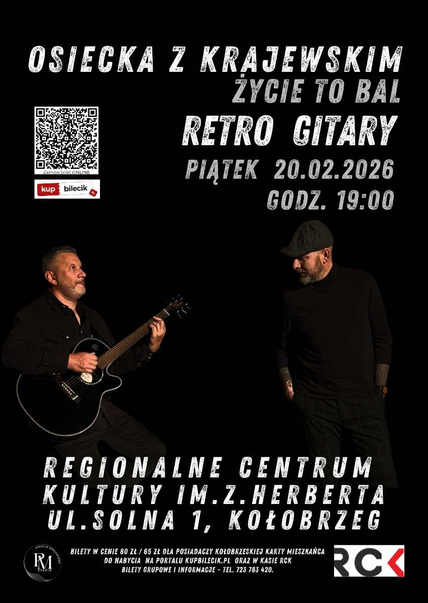 Po sukcesie trasy koncertowej "Osiecka z Krajewskim, czyli podróż sentymentalna" promującej płytę "Osiecka z Krajewskim" pora na kolejną odsłonę niezwykłych przebojów tej wyjątkowej pary autorskiej. Tym razem zespół Retro Gitary zaprasza Państwa na trasę promującą drugą płytę piosenek Agnieszki Osieckiej i Seweryna Krajewskiego pod tytułem "Życie to bal", na której znajdą się takie przeboje jak: "Najpiękniejsza", "Nie jesteś sama", "Nie lubię niedziel" czy też "Luna srebrnooka".