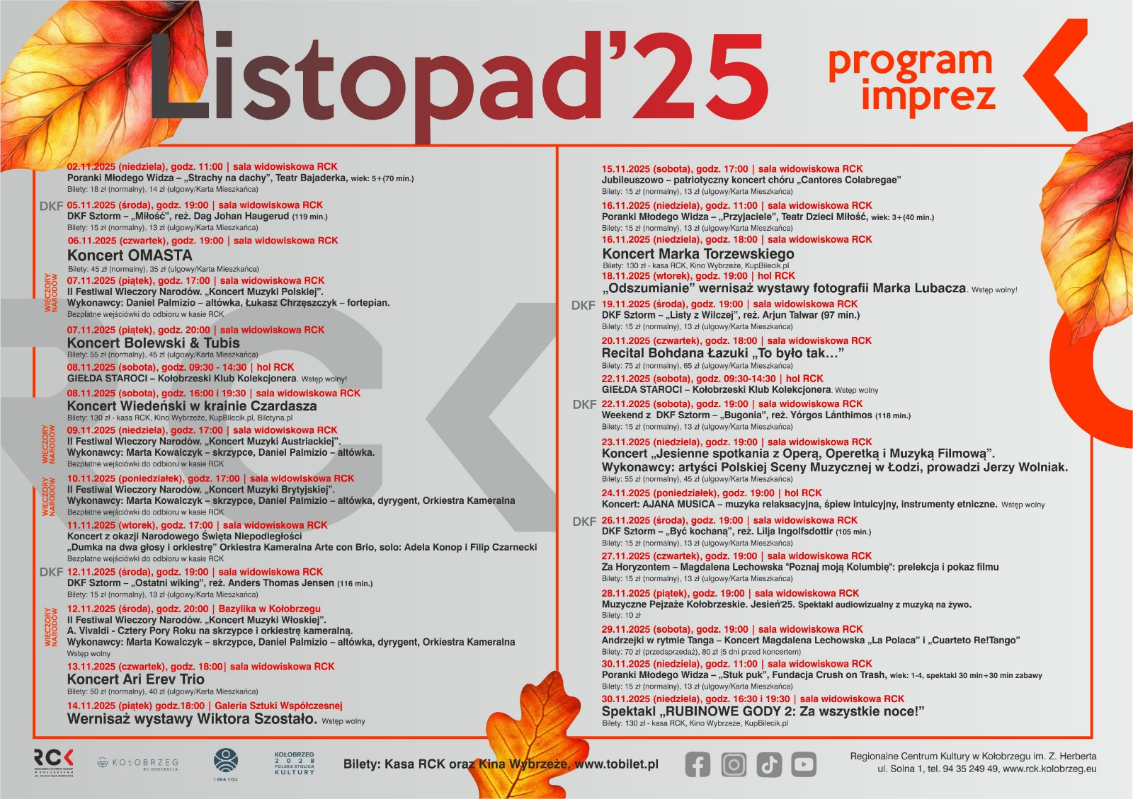 Bilety w cenie 40/20 PLN (karta mieszkańca) do nabycia na stronie tobilet.pl i od 14 listopada w kasie Regionalnego Centrum Kultury im. Z. Herberta.